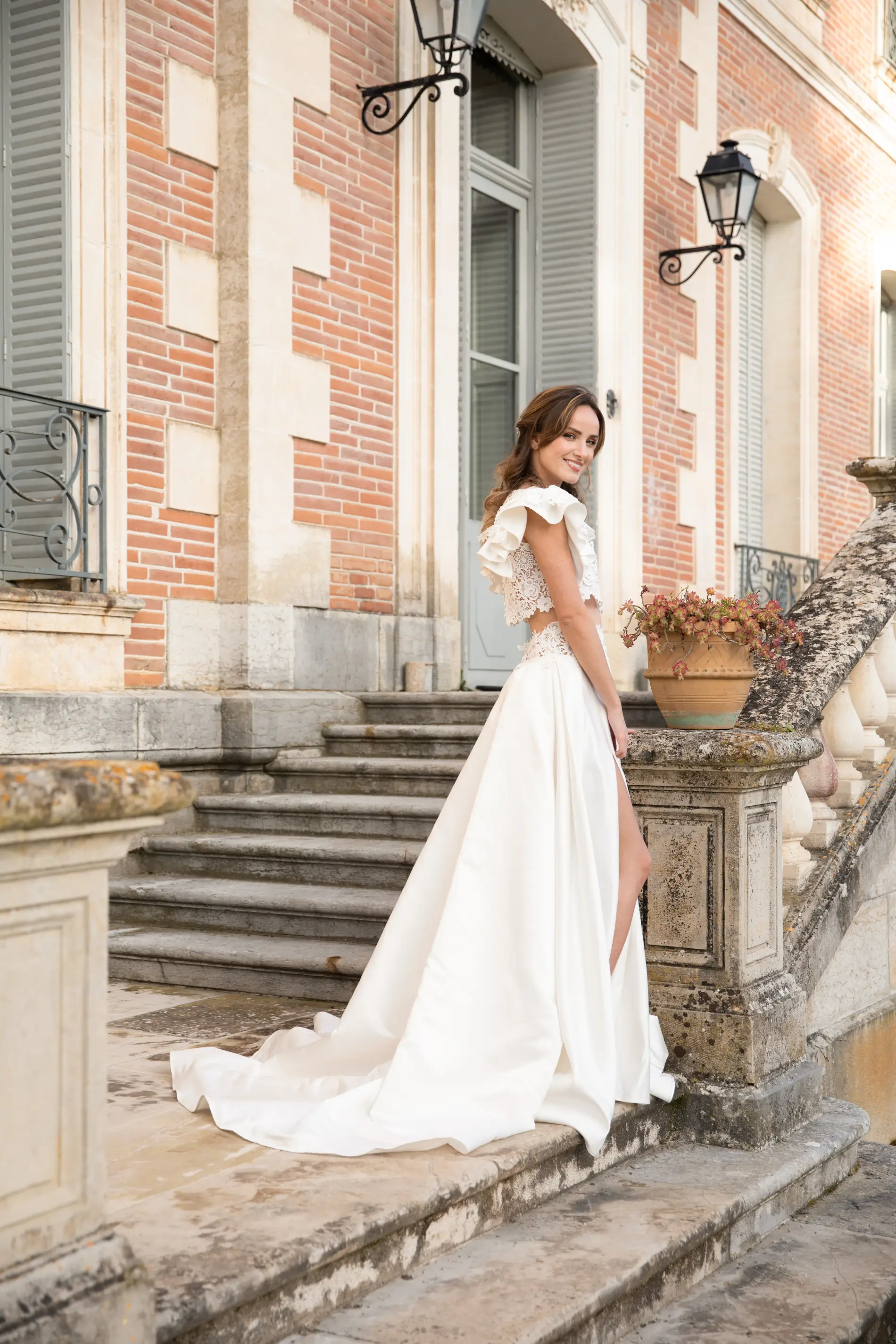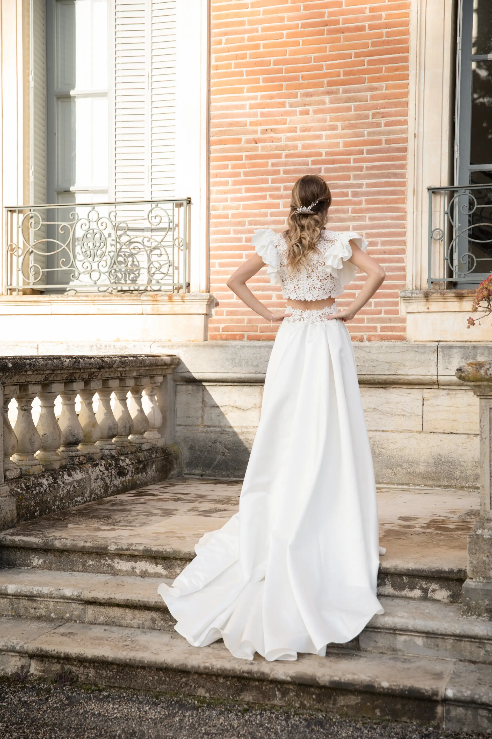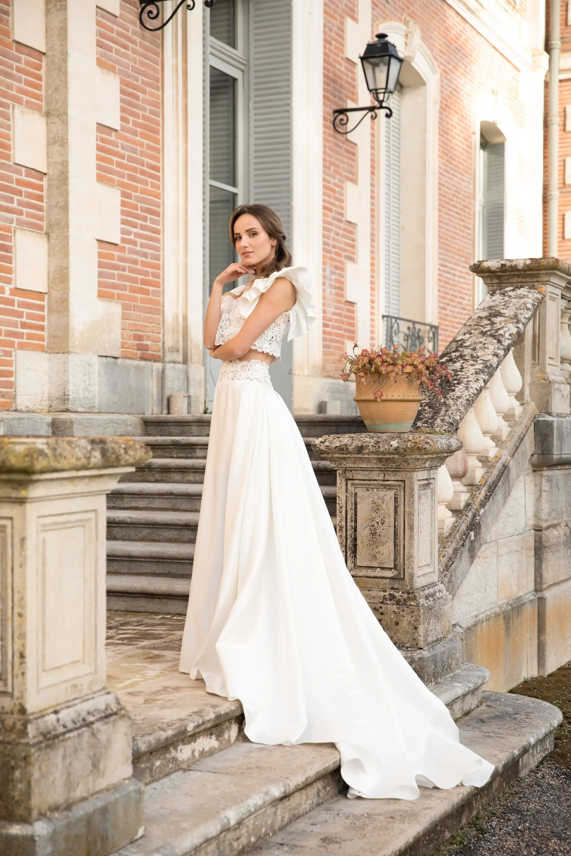 Au-delà des collections standards, Chloé met son savoir-faire d'artisan au service de votre imagination pour donner vie à une robe de mariée unique, entièrement conçue sur mesure dans notre atelier de Montauban. Ce voyage créatif débute toujours par un essayage classique, une étape essentielle qui vous permet d'explorer différentes formes, coupes et matières afin de définir ce qui sublime réellement votre silhouette. C'est un véritable jeu de composition qui s'installe : vous pouvez choisir le devant d'un modèle et le dos d'un autre, tout en sélectionnant avec nous les tissus nobles qui composeront votre tenue.