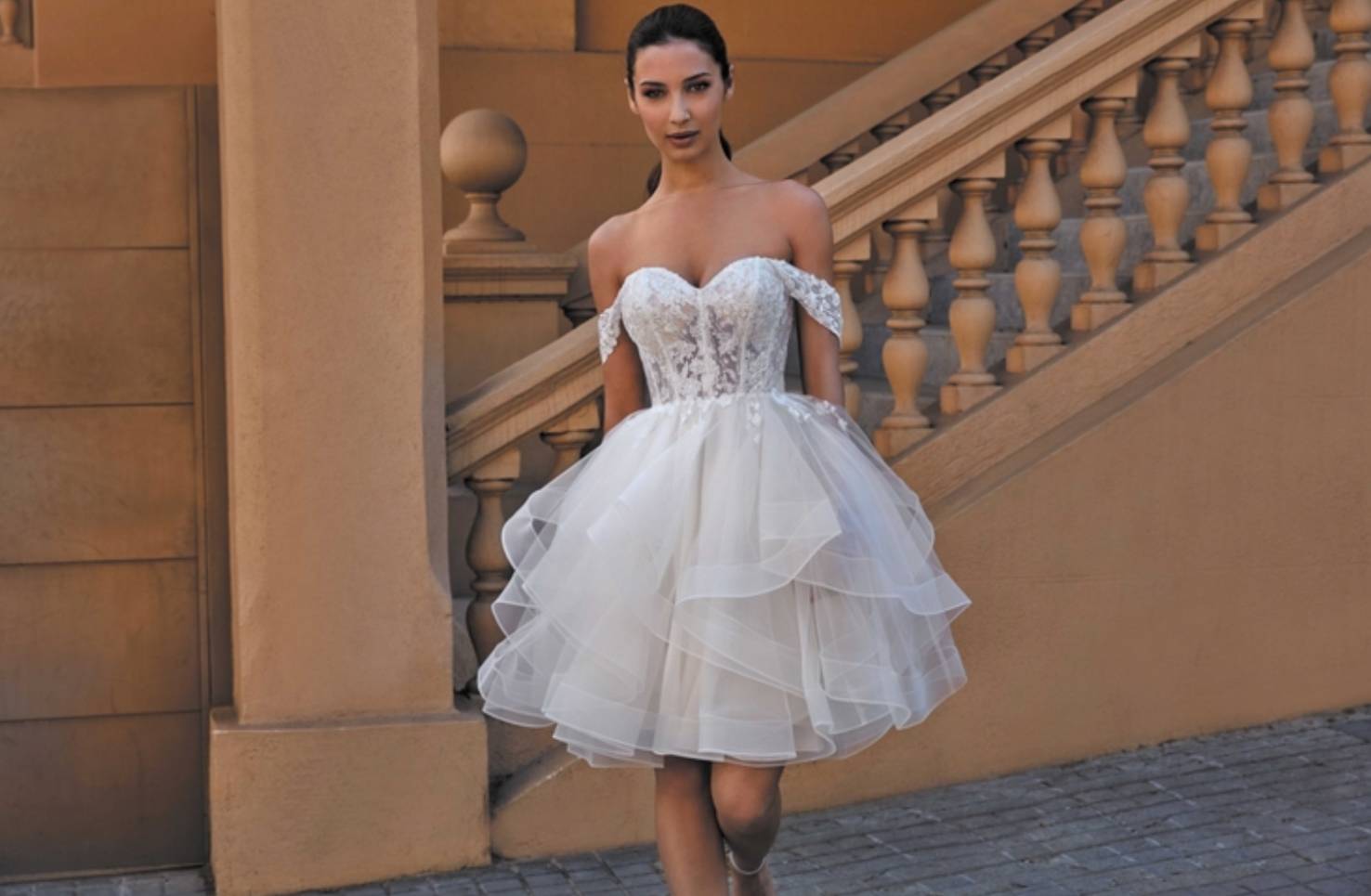 Robe courte avec haut en dentelle, jupe à volants et laçage dans le dos pour un ajustement parfait.